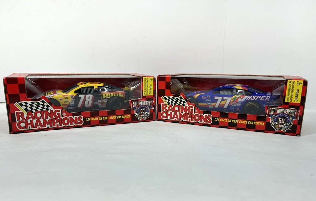 NOS 1/24 RACING CHAMPIONS 50TH ANNIVERSARY 1998 GARY BRADBERRY #78 PILOT TRAVEL CENTERS FORD TAURUS DIE CAST S/N F613 AND NOS 1/24 RACING CHAMPIONS 50TH ANNIVERSARY 1998 ROBERT PRESSLEY #77 JASPER DIE CAST S/N F806