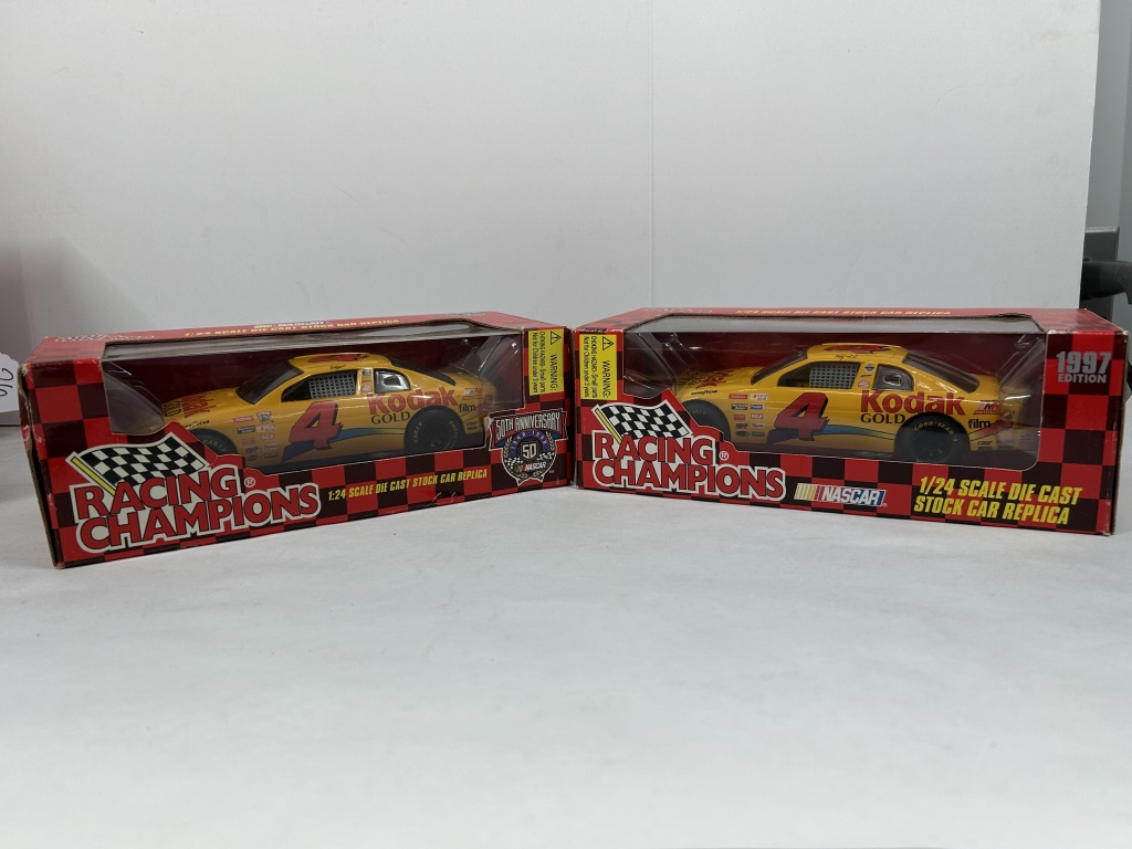 NOS 1/24 RACING CHAMPIONS 50TH ANNIVERSARY 1997 STERLING MARLIN #4 KODAK GOLD CHEVROLET MONTE CARLO DIE CAST S/N CD27 AND NOS 1/24 RACING CHAMPIONS 1997 EDITION STERLING MARLIN #4 KODAK GOLD CHEVROLET MONTE CARLO DIE CAST S/N A904