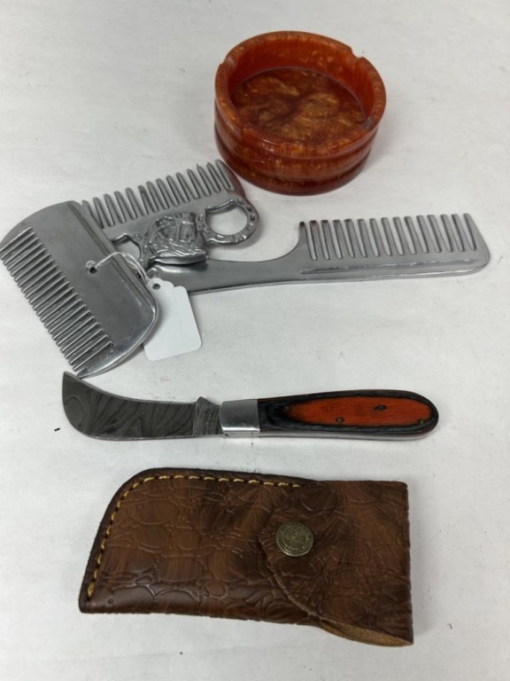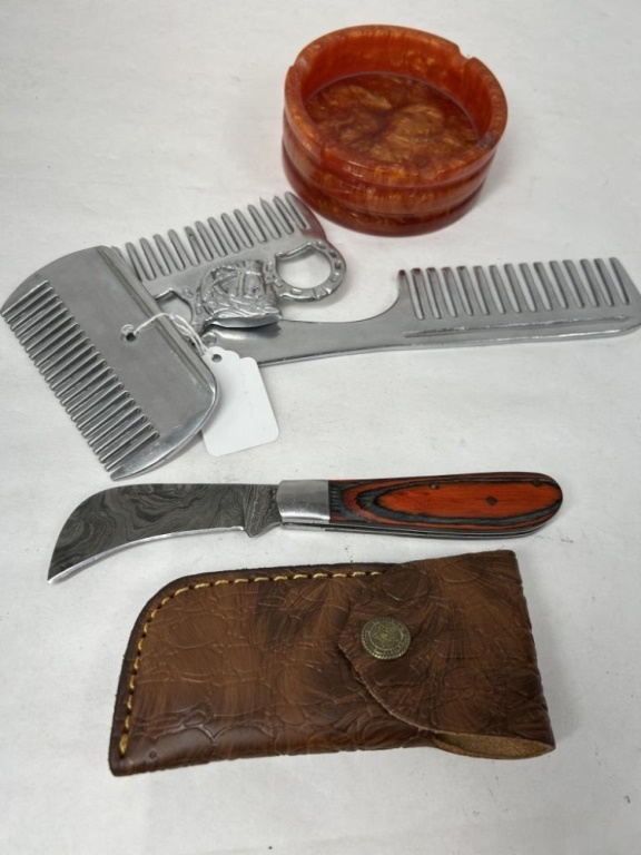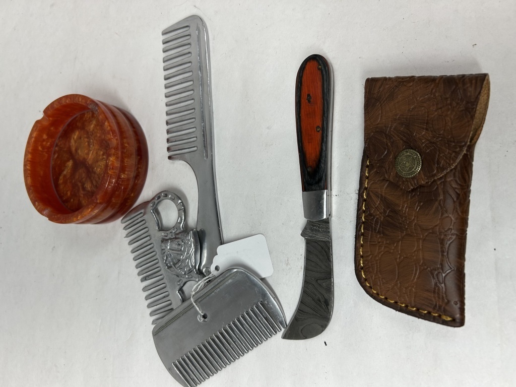 DEMASCUS HAND FORGED POCKET KNIFE WITH CASE, ASH TRAY AND COMBS