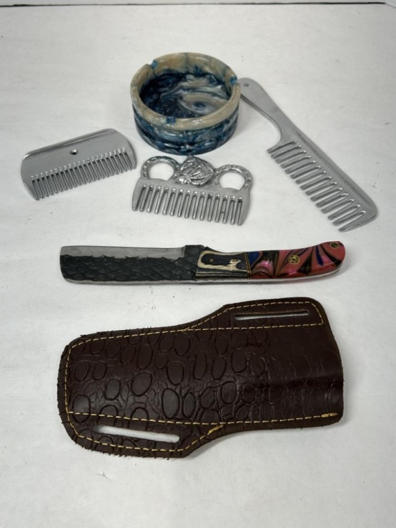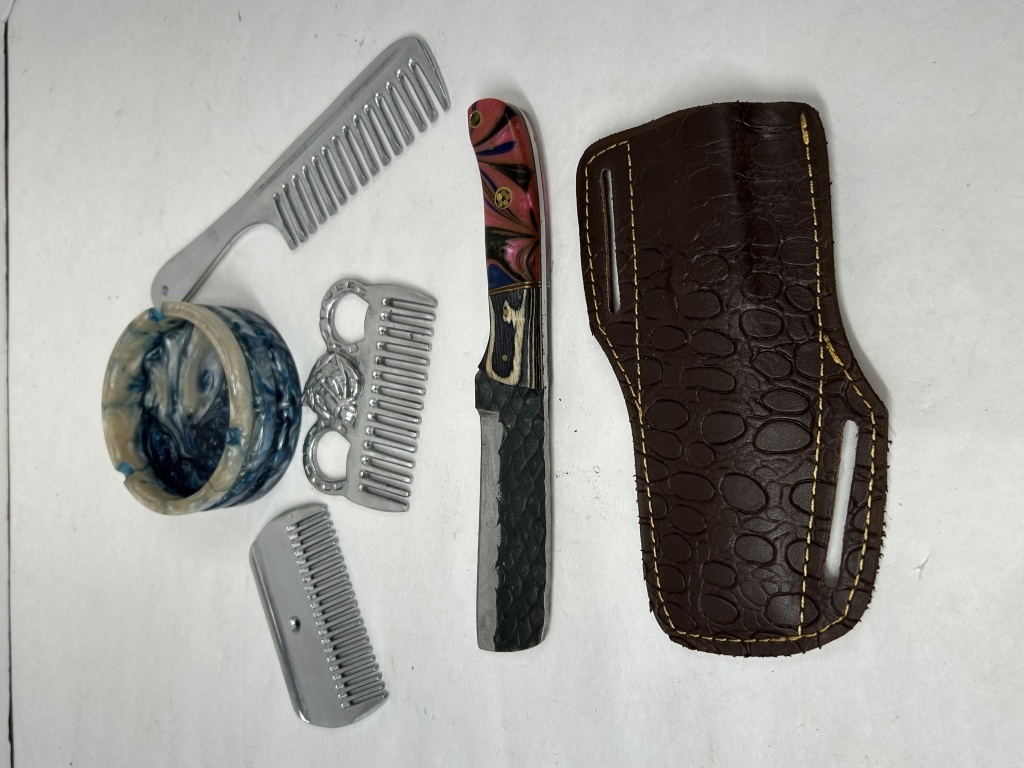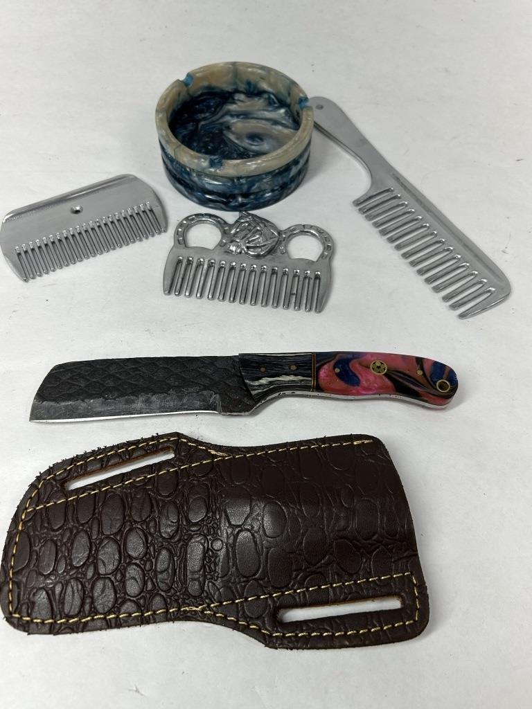 DEMASCUS HAND FORGED KNIFE 3″BLADE WITH SHEATH, ASH TRAY AND COMBS