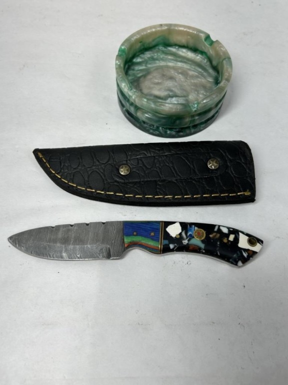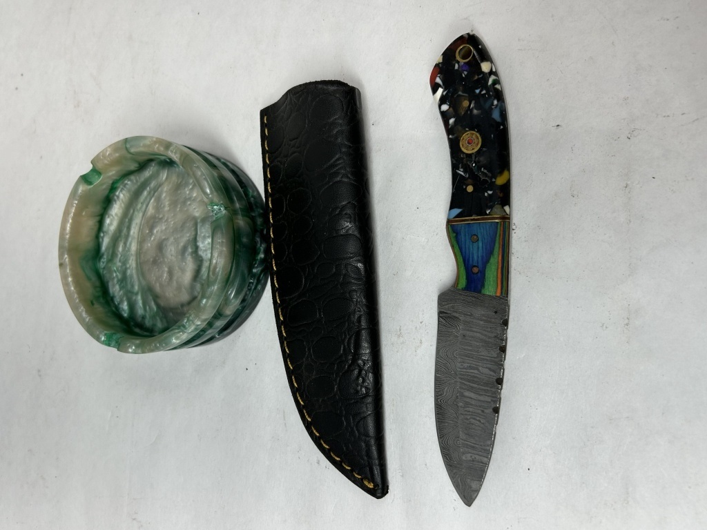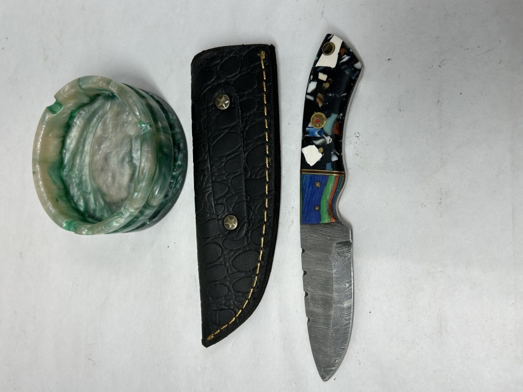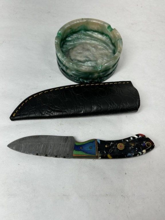 DEMASCUS HAND FORGED KNIFE 3″ BLADE WITH SHEATH AND ASH TRAY
