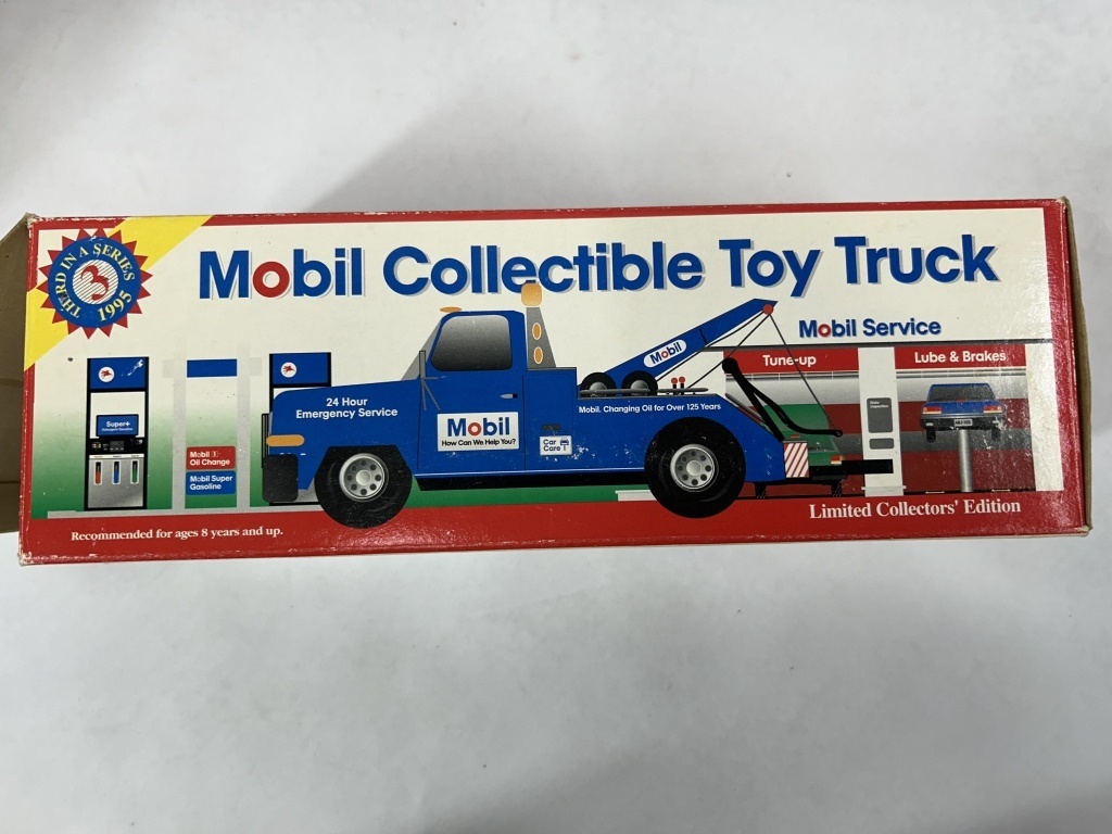 NOS 1/24 MOBIL COLLECTIBLE TOY TRUCK 1995 THIRD IN SERIES WORKING HEAD AND TAIL LIGHTS MOVABLE TOW ARM AND BAR BEEPING SOUND FOR REVERSE LIMITIED COLLECTORS EDITION