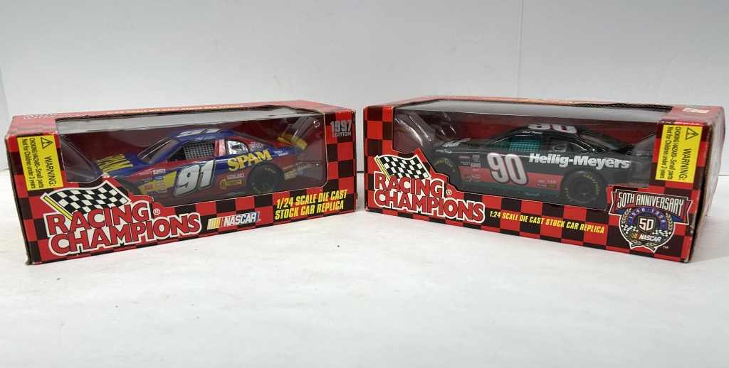 NOS 1/24 RACING CHAMPIONS 50TH ANNIVERSARY #90 HEILIG-MEYERS NASCAR DIE CAST S/N CD6 AND RACING CHAMPIONS 1997 EDITION MIKE WALLACE #91 SPAM CHEVROLET MONTE CARLO DIE CAST S/N A603