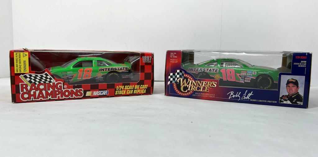 NOS 1/24 RACING CHAMPIONS 1997 EDITION BOBBY LABONTE #18 INTERSTATE BATTERIES PONTIAC S/N A123 AND NOS 1/24 WINNER’S CIRCLE BOBBY LABONTE #18 1998 STOCK CAR SERIES