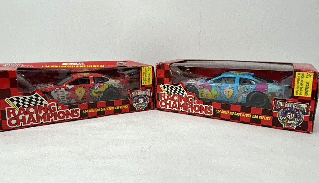 NOS 1/24 RACING CHAMPIONS 50TH ANNIVERSARY LAKE SPEED #9 CARTOON NETWORK S/N R513 AND NOS 1/24 RACING CHAMPIONS 50TH ANNIVERSARY LAKE SPEED #9 “HAPPY BIRTHDAY”CARTOON NETWORK 1998 DIECAST S/N H516
