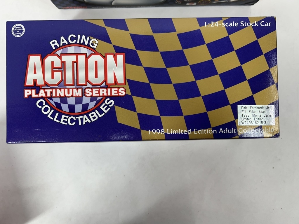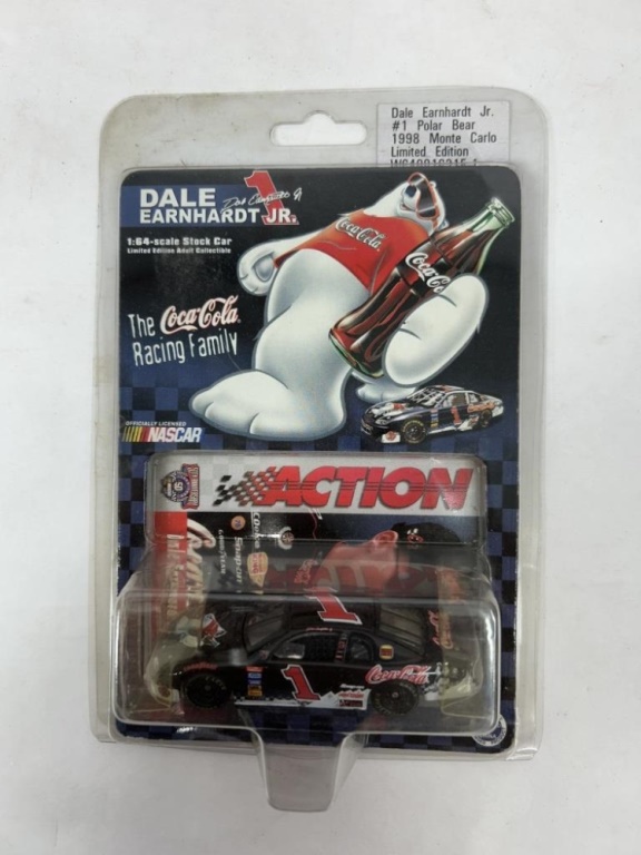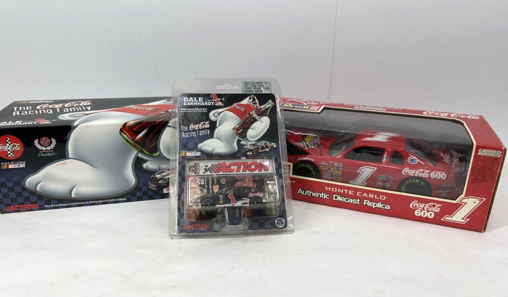 NOS 1/24 ACTION PLATINUM SERIES RACING DALE EARNHARDT JR. #1 POLAR BEAR 1998 MONTE CARLO LIMITED EDITION AND NOS 1/24 REVELL RACING COCA COLA 600 #1 1997 AND NOS 1/64 ACTION RACING 50TH ANNIVERSARY DALE EARNHARDT JR. #1 POLAR BEAR 1998 MONTE CARLO LIMITED EDITION