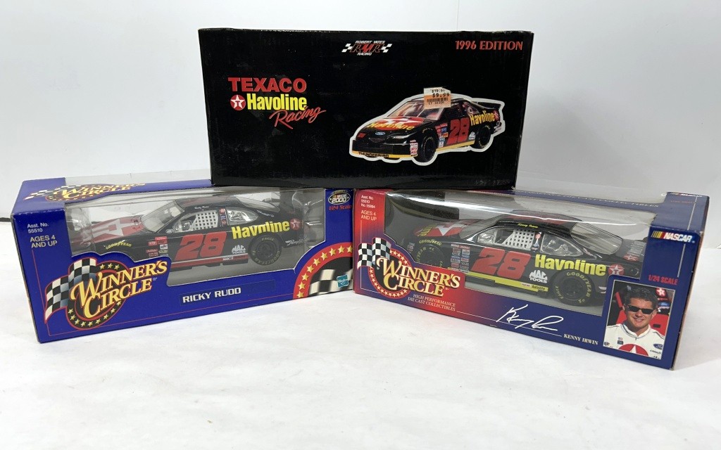 NOS 1/24 1996 TEXACO HAVOLINE RACING ERNIE IRVAN #28 FORD THUNDERBIRD AND NOS 1/24 WINNER’S CIRCLE RICKY RUDD #28 HAVOLINE AND NOS 1/24 WINNER’S CIRCLE KENNY IRWIN #28 HAVOLINE