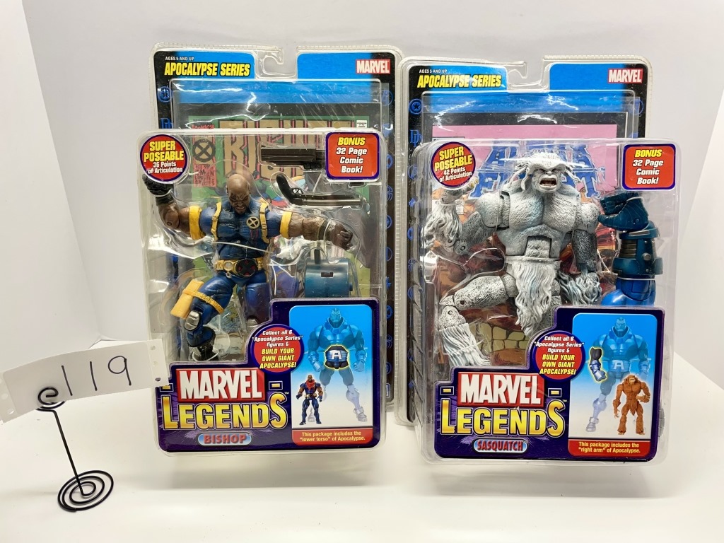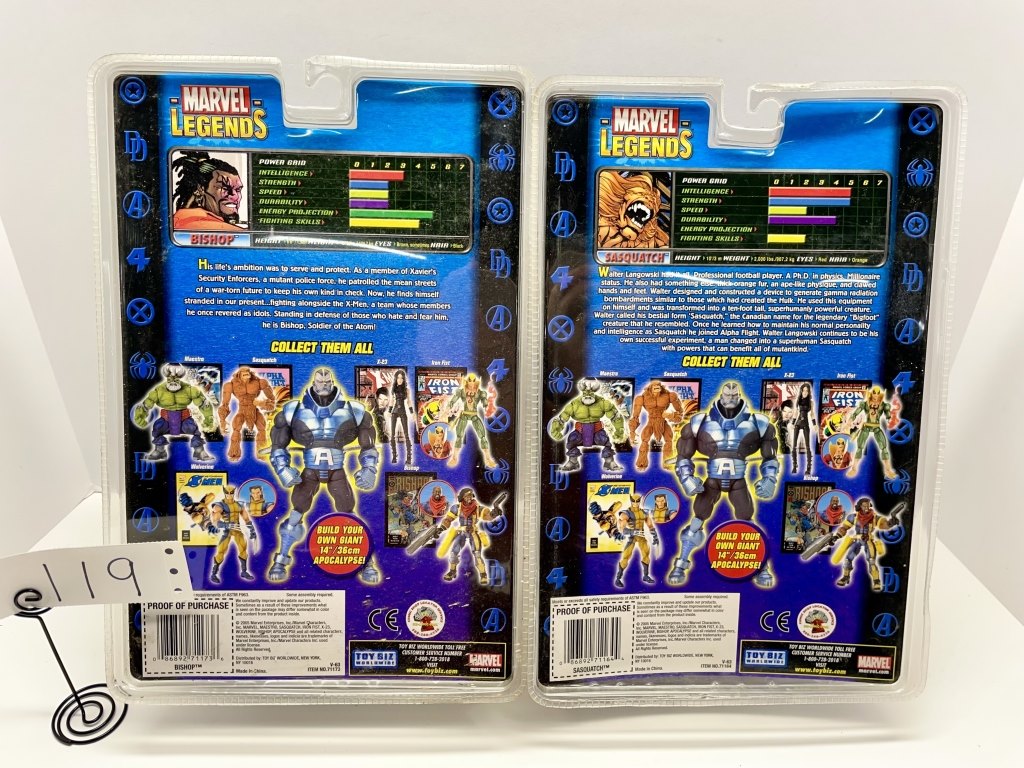 BISHOP INCLDS LOWER TORSO OF APOCALYPSE- SASQUASH INCLDS RIGHT ARM OF APOCALYPSE- BOTH HAVE 32 PG COMIC BOOK – NIB – SHOWS SOME WEAR AND TEAR FROM STORAGE