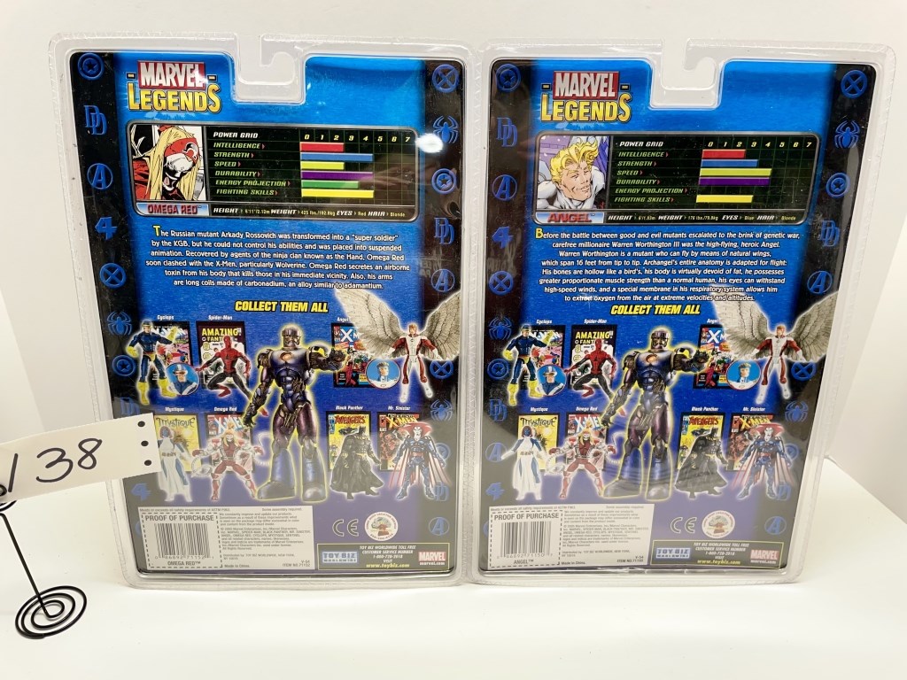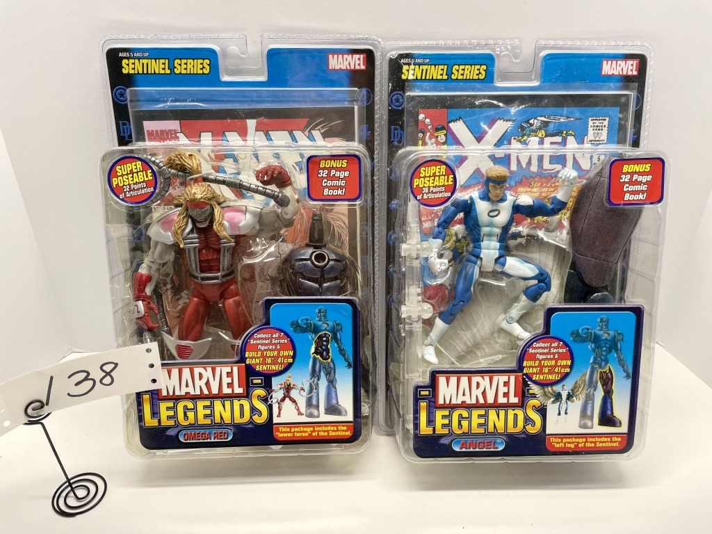 OMEGA RED- HAS LOWER TORSO TO SENTINEL – ANGEL – HAS LEFT LEG TO SENTINEL- BOTH HAVE COMIC BOOKS – NIB- SHOWS SOME WEAR AND TEAR FROM STORAGE