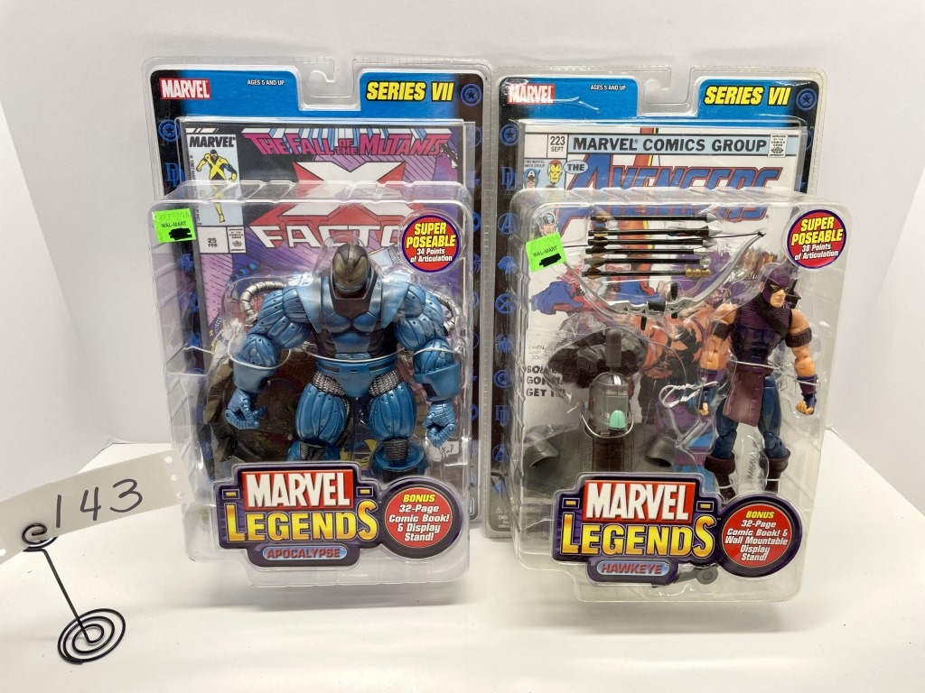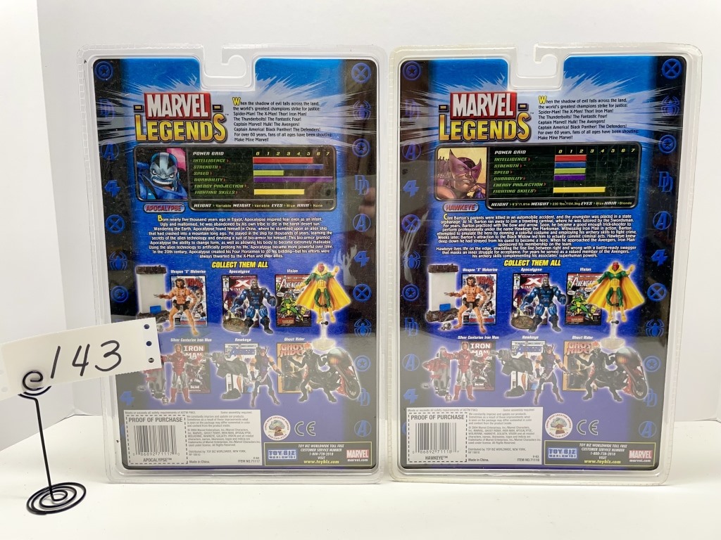 HAWKEYE- HAS COMIC BOOK AND WALL MOUNT DISPLAY – APOCALYPSE- HAS COMIC BOOK AND DISPLAY STAND- NIB – SHOWS SOME WEAR AND TEAR FROM STORAGE