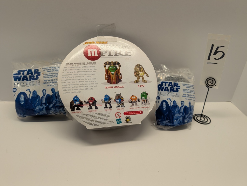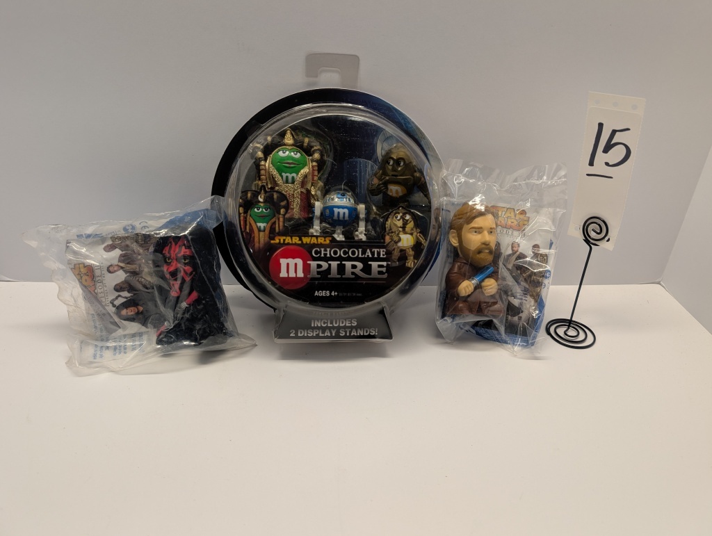 CHOCOLATE M&M MPIRE WITH TWO BURGER KING KIDS MEAL TOYS