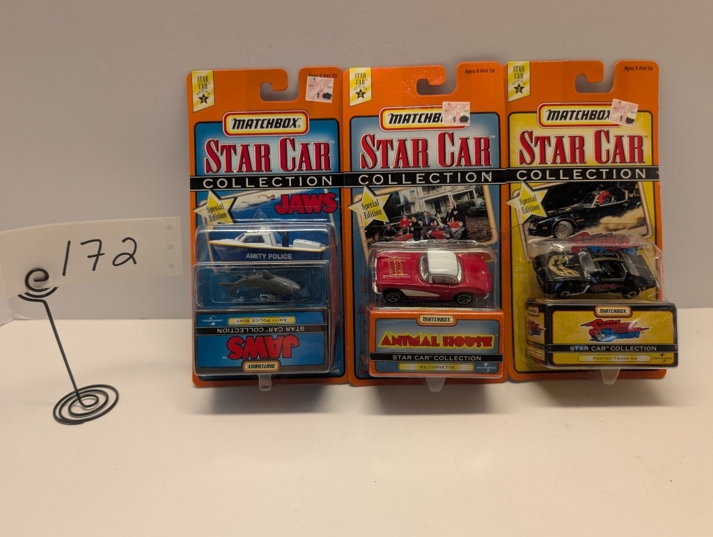 STAR CAR COLLECTION SERIES 2 – SPECIAL EDITION- SMOKEY & THE BANDIT – STAR CAR COLLETION- STAR CAR SERIES 2- COLLECTION 62 CORVETTE- STAR CAR SERIES 2- JAWS AMITY POLICE BOAT- NIB- SHOWS SOME WEAR AND TEAR