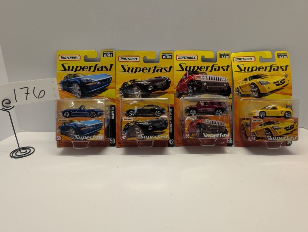 LIMITED EDITIONS- SUPERFAST- 54 OPEL SPEEDSTER- SUPERFAST 42 PONTIAC SOLSTICE- SUPERFAST 66 HUMMER H3- SUPERFAST 59 BMW Z8-NIB- SHOWS SOME WEAR AND TEAR FROM STORAGE