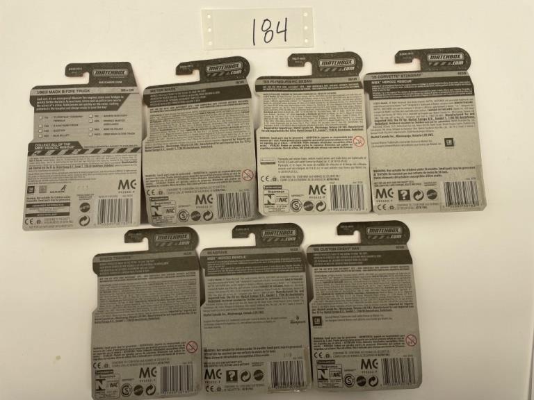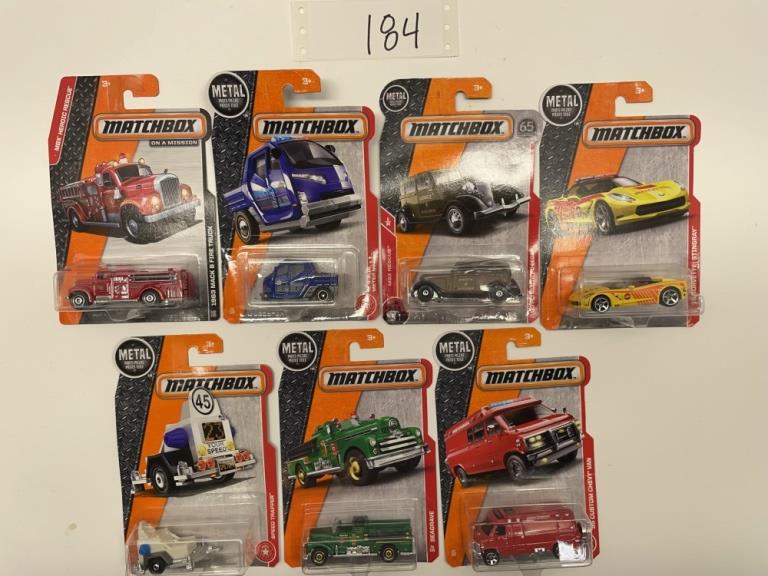 METAL: ’15 CORVETTE STINGRAY- ’33 PLYMOUTH PC SEDAN- METER MADE- SEAGRAVE-’95 CUSTOME CHEVY VAN- SPEED TRAPPER- MBX HERIOC RESCUE ’63 MACK B FIRE TRUCK-NIB- SHOWS SOME WEAR AND TEAR FROM STORAGE
