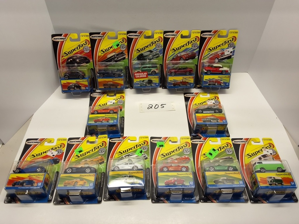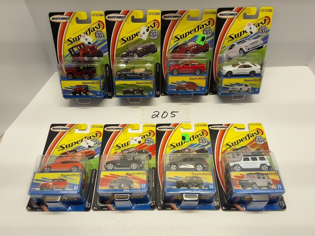 SUPERFAST 35 YEARS 1969-2004 – MERCEDES-BENZ CLK #67, 55 CHEVY BEL AIR #49, VOLKSWAGON CONCEPT #48, VOLKSWAGON TRANSPORTER #54, JAGUAR XKB #69, 68 FORD MUSTANG 428 #52, HONDA ELEMENT #44, 96′ LOTUS ELISE #42, FORD