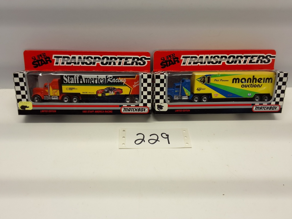 SUPER STAR TRANSPORTERS- 93′ STAFF AMERICA RACING- LIMITED EDITION #74 – MANHEIM AUCTIONS- LIMITED EDITION#41 – NIB- SHOWS SOME WEAR AND TEAR FROM STORAGE