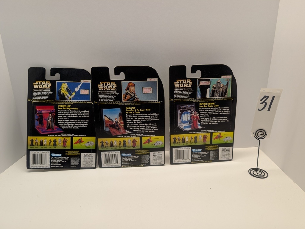MARA JADE – PRINCESS LEIA – IMPERIAL SENTINEL; ALL NIB, SHOWS SOME WEAR FROM STORAGE, ALL PACKAGES BECOME 3*D PLAY SCENE