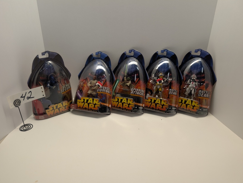 ROYAL GUARD – YODA – COMMANDER BLY – MACE WINDU – CLONE COMMANDER; ALL NIB, SHOWS SOME WEAR FROM STORAGE
