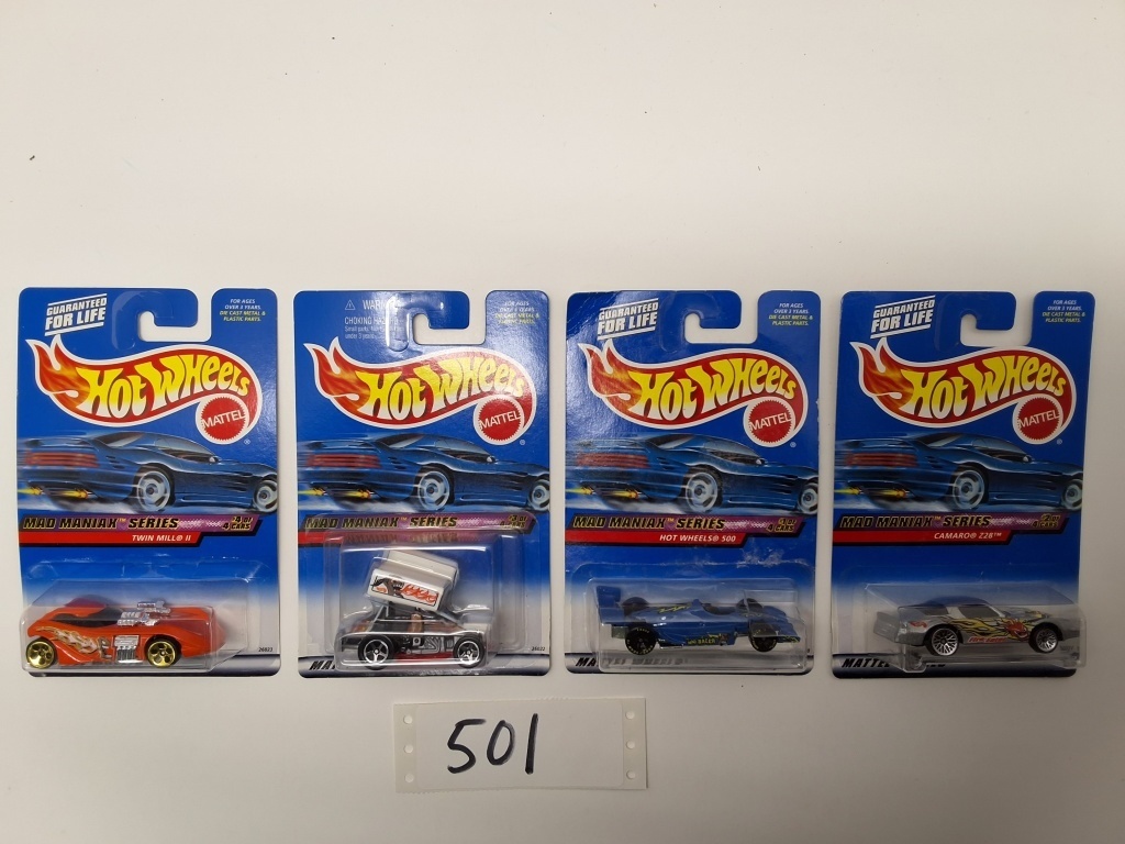 SET 1-4: HOT WHEELS 500 – CAMARO Z28 – SLIDEOUT – TWIN MILL II – NIB – SHOWS SOME WEAR AND TEAR FROM STORAGE