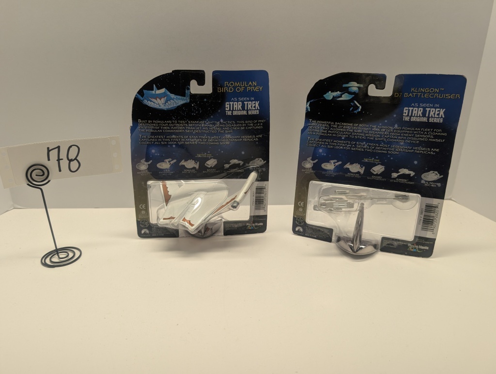 KLINGON D7 BATTLECRUISER – ROMULAN BIRD OF PREY: NIB, SERIES ONE, SHOWS SOME WEAR FROM STORAGE