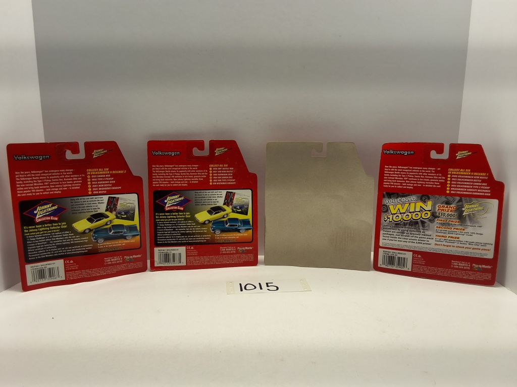QUANTITY 2 1962 BEETLE-2001 NEW BEETLE-1966 BEETLE-1963 KARAN GHIA- QUANITY 2 1965 SAMBA BUS- 1964 21 WINDOW SAMBA BUS-QUANTITY 2 1966 SAMBA BUS-1960 SAMBA BUS- NIB - SHOWS SOME WEAR