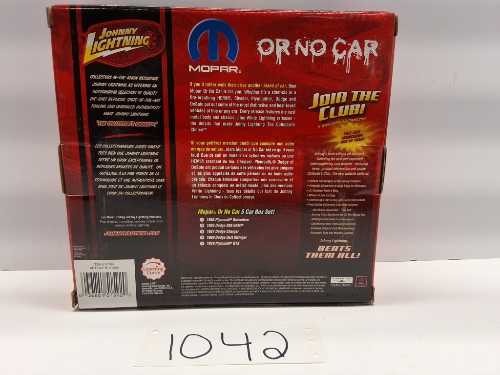 1958 PLYMOUTH BELVEDERE- 1964 DODGE 330 HEMI- 1967 DODGE CHARGER- 1969 DODGE DART SWINGER- 1970 PLYMOUTH GTX- NIB- SHOWS SOME WEAR AND TEAR FROM STORAGE