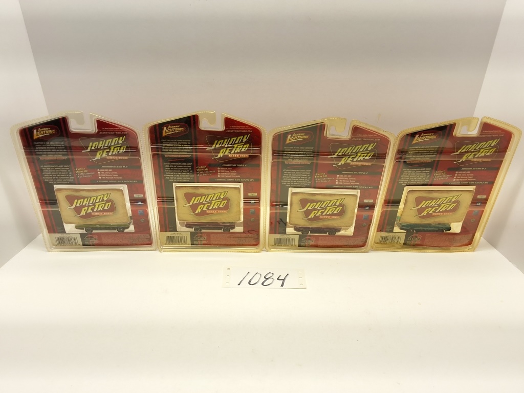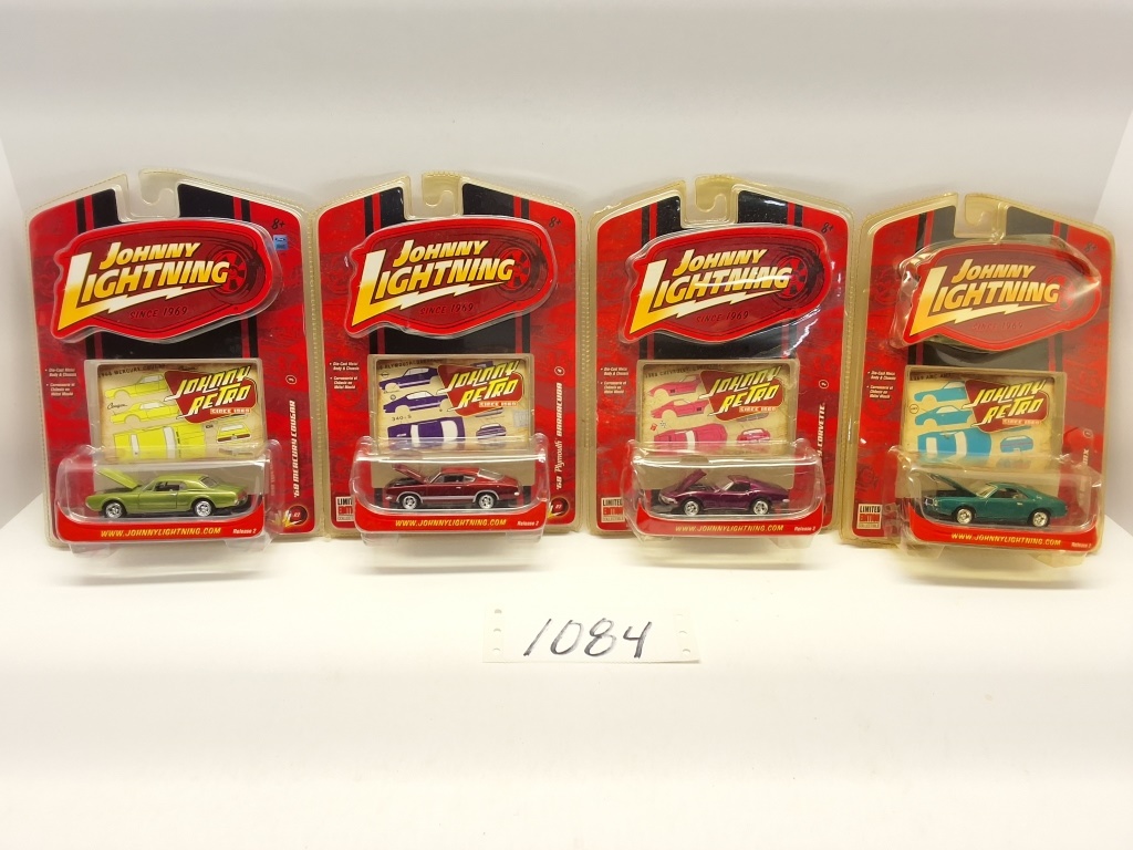 COMPLETE SET - JOHNNY RETRO SINCE 1969: '69 AMC AMX - '68 CHEVY CORVETTE - '68 PLYMOUTH BARRACUDA - '68 MERCURY COUGAR - NIB - SHOWS SOME WEAR AND TEAR FROM STORAGE