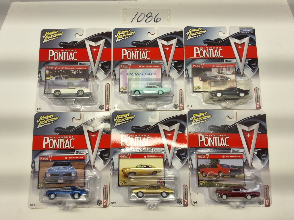 COMPLETE SET: 1971 PONTIAC HURST SSJ GRAND PRIX - 1961 PONTIAC CATALINA - 1968 PONTIAC FIREBIRD - 1973 PONTIAC GTO - 1969 PONTIAC GTO - 1964 PONTIAC GTO - NIB- SHOWS SOME WEAR