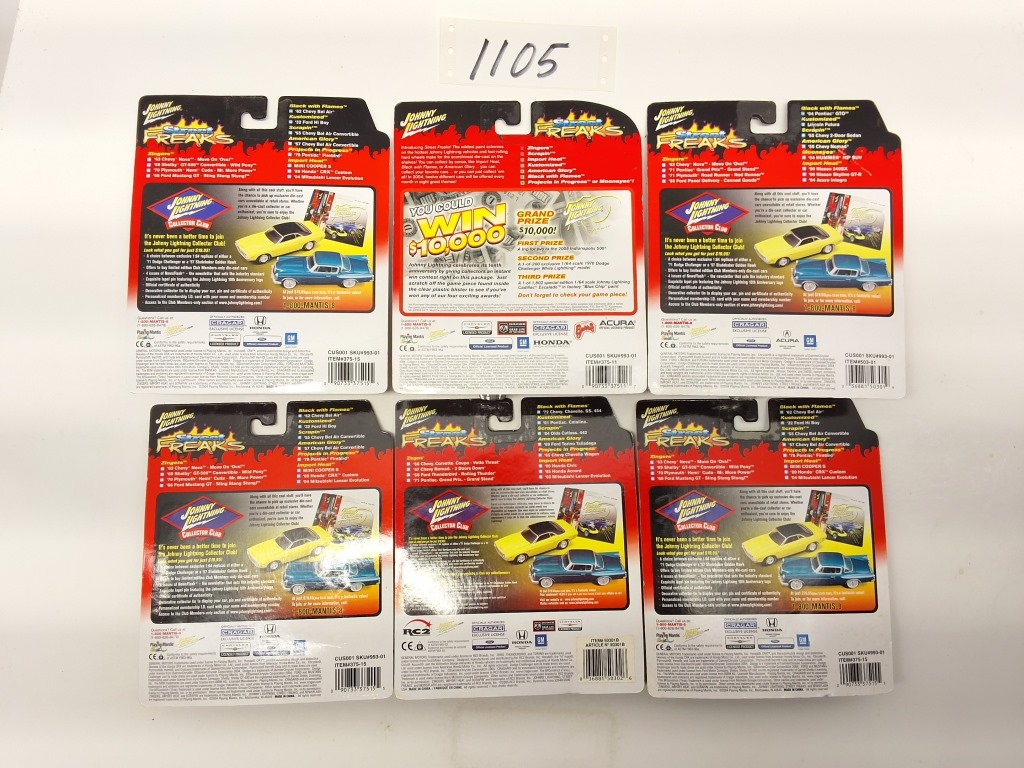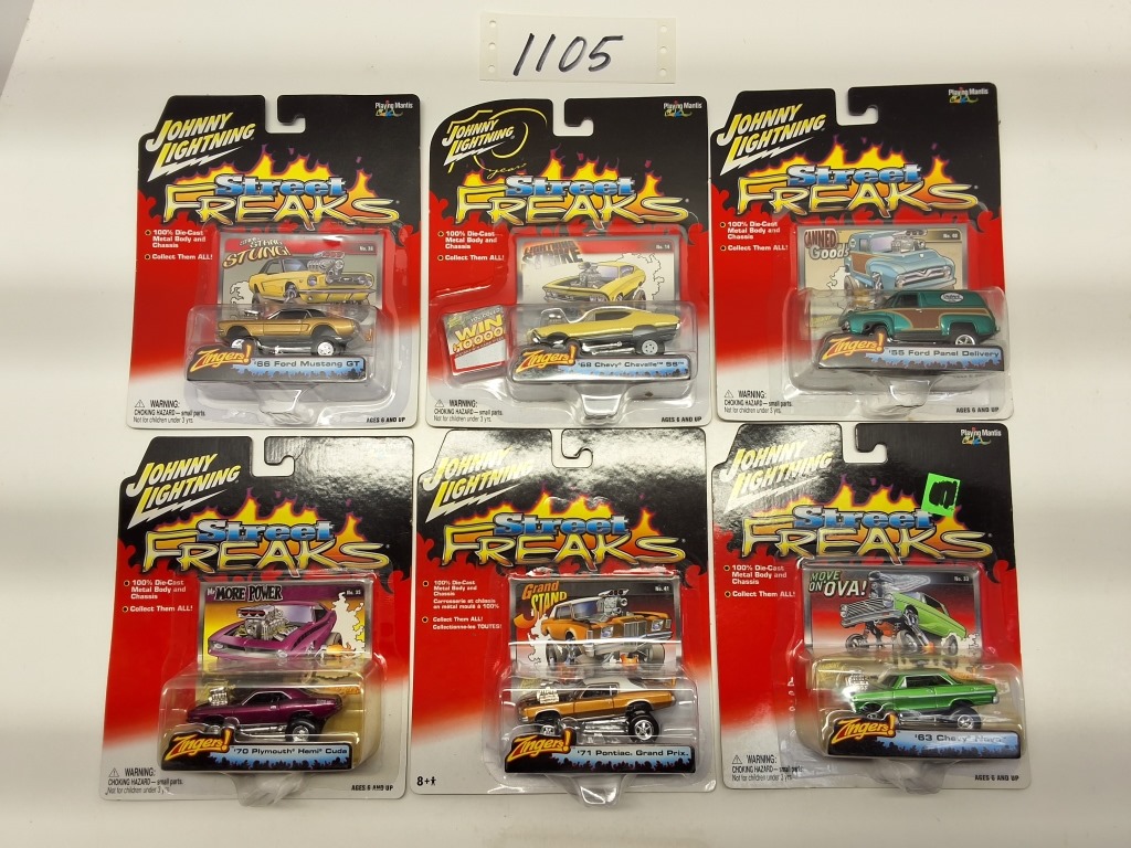 71 PONTIAC RAND PRIX - 63 CHEVY NOVA - 55 FORD PANEL DELIVERY - 70 PLYMOUTH MENI CUDA - 68 CHEVY CHEVELLE SS - 66 FORD MUSTANG GT - NIB- SHOWS SOME WEAR AND TEAR FROM STORAGE