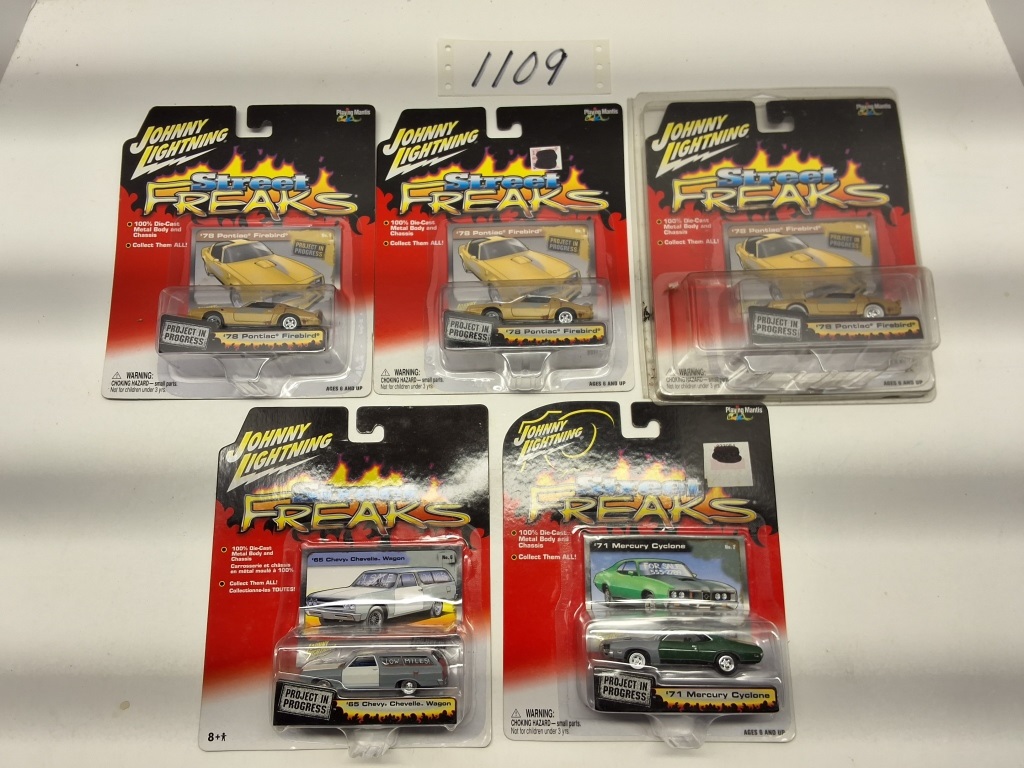 STREET FREAKS - '71 MERCURY CYCLONE - '78 PONTIAC FIREBIRD(QTY 3) - '65 CHEVY CHEVELLE WAGON - - NIB - SHOWS SOME WEAR AND TEAR