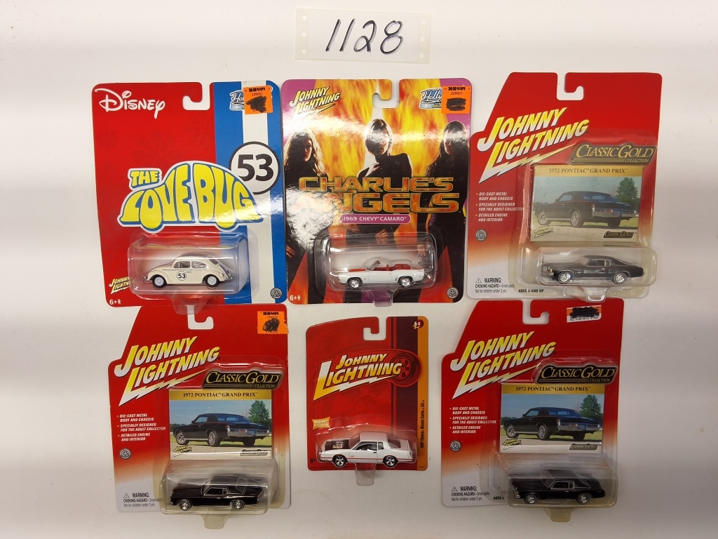 CLASSIC GOLD COLLECTION: '1972 PONTAIC GRAND PRIX (QTY 3) - CHARLIES ANGELS: 1969 CHEVY CAMARO - THE LOVE BUG - 1987 CHEVY MONTE CARLO SS - NIB - SHOWS SOME WEAR AND TEAR FROM STORAGE