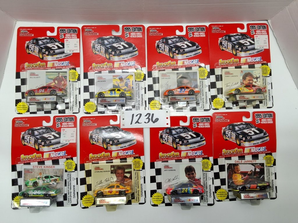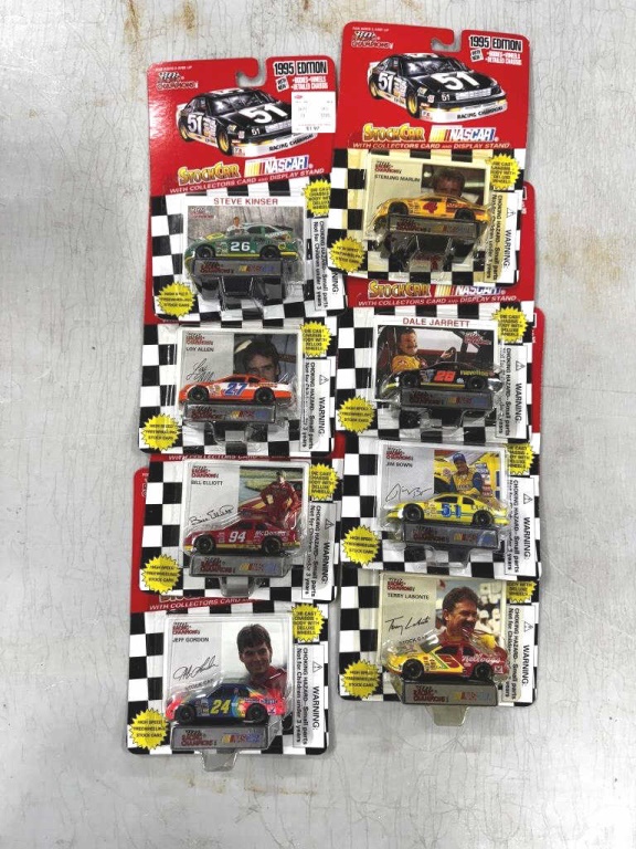 STERLING MARLIN 4 – STEVE KINSER 26 – DALE JARRETT 28 – JIM BOWN 51 – TERRY LABONTE 5 – LOY ALLEN 27 – BILL ELLIOT 94 – JEFF GORDON 24 – NIB – SHOWS SOME WEAR AND TEAR FROM STORAGE