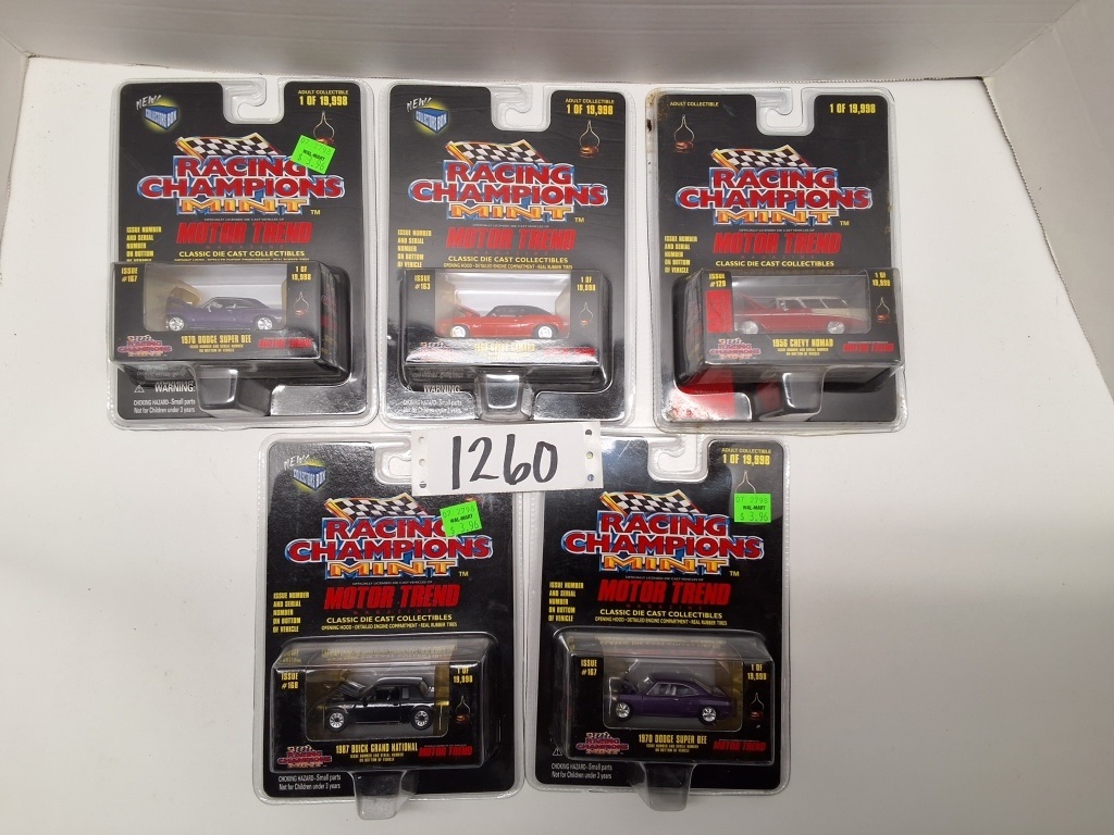 1970 DODGE SUPER BEE - 1987 BUICK GRAND NATIONAL - 1969 CHEVY CAMARO - 1970 DODGE SUPER BEE - 1956 CHEVY NOMAD - NIB - SHOWS SOME WEAR AND TEAR FROM STORAGE