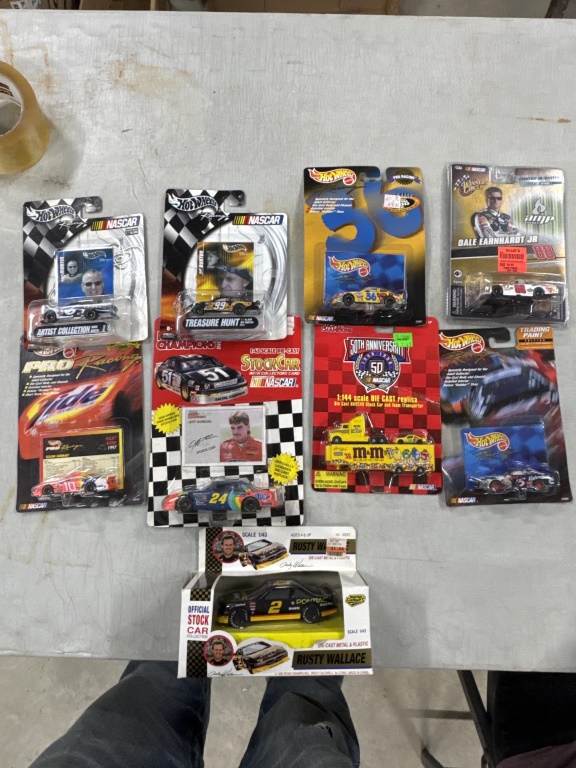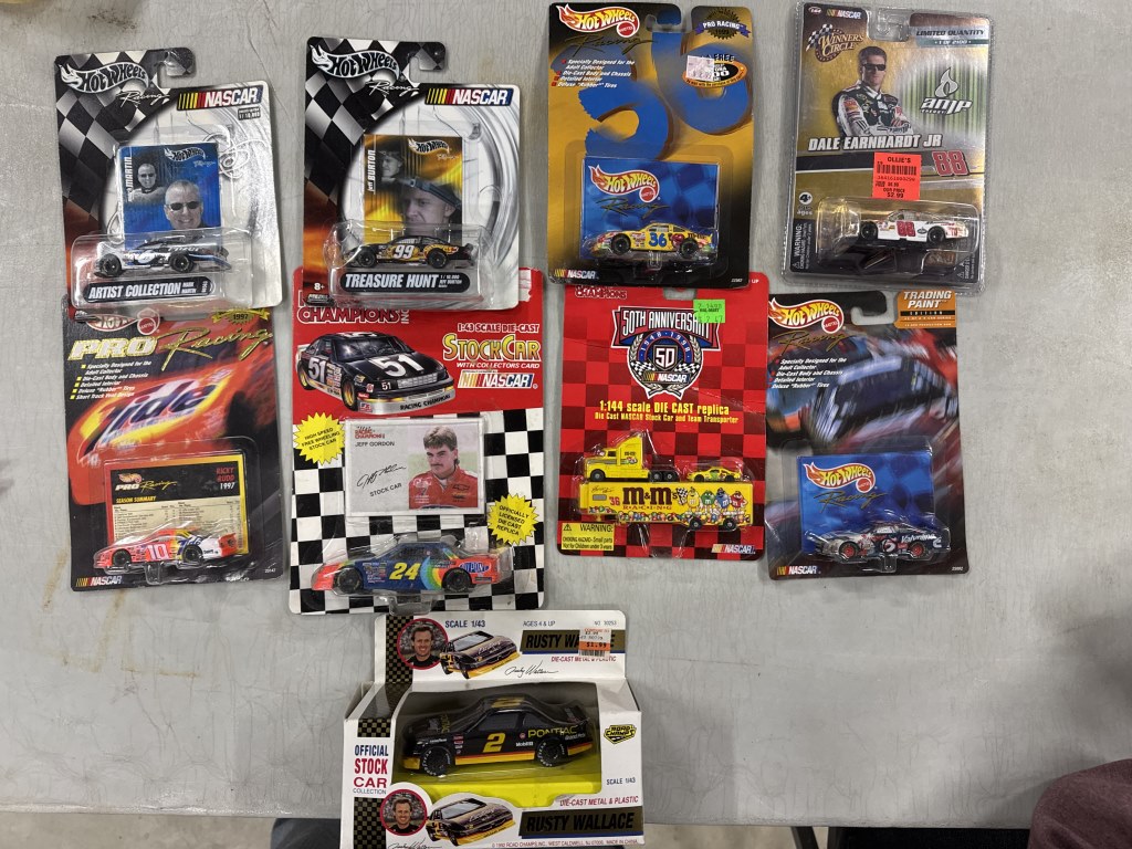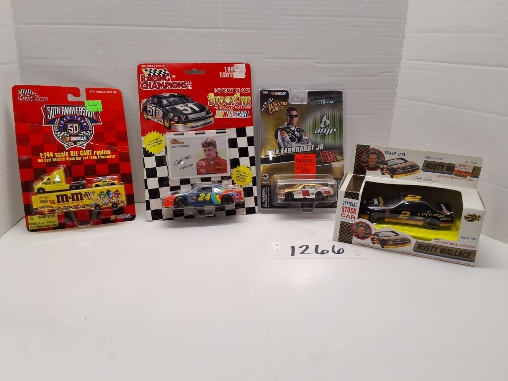 TIDE 10 - DUPONT 24 - MARK MARTIN 6 - M&M 36 TRANSPORTER - JEFF BURTON 99 - M&M 36 - MOUNTAIN DEW 88 - VALVOLINE 6 - PONTIAC 2 - NIB - SHOWS SOME WEAR AND TEAR FROM STORAGE