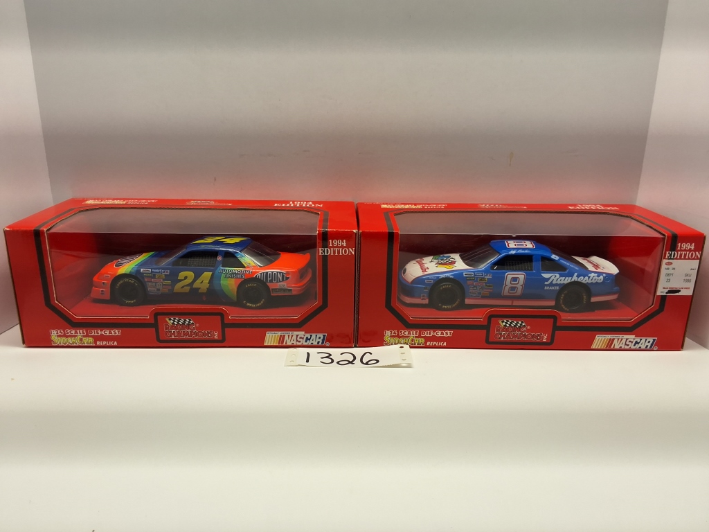 1994 EDITION - 1:24 SCALE - JEFF GORDON #24 - JEFF BURTON #8 - NIB - SHOWS SOME WEAR AND TEAR FROM STORAGE