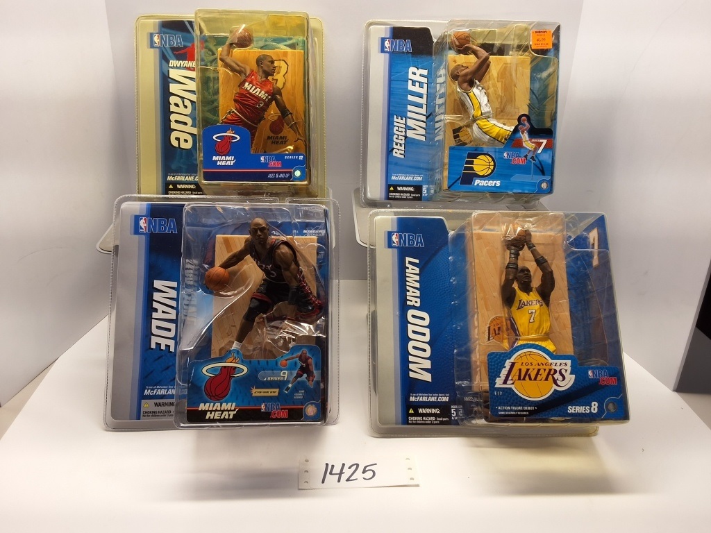 QUANTITY 2 OF DWYANE WADE, LAMR ODOM, REGGIE MILLER - NIB - SHOWS SOME WEAR AND TEAR FROM STORAGE