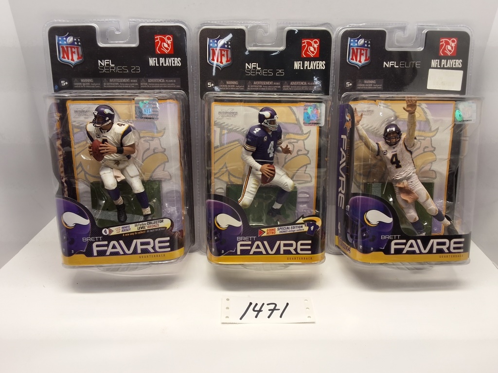 QUANTITY 3 OF BRETT FAVRE - NIB- SHOWS SOME WEAR AND TEAR FROM STORAGE