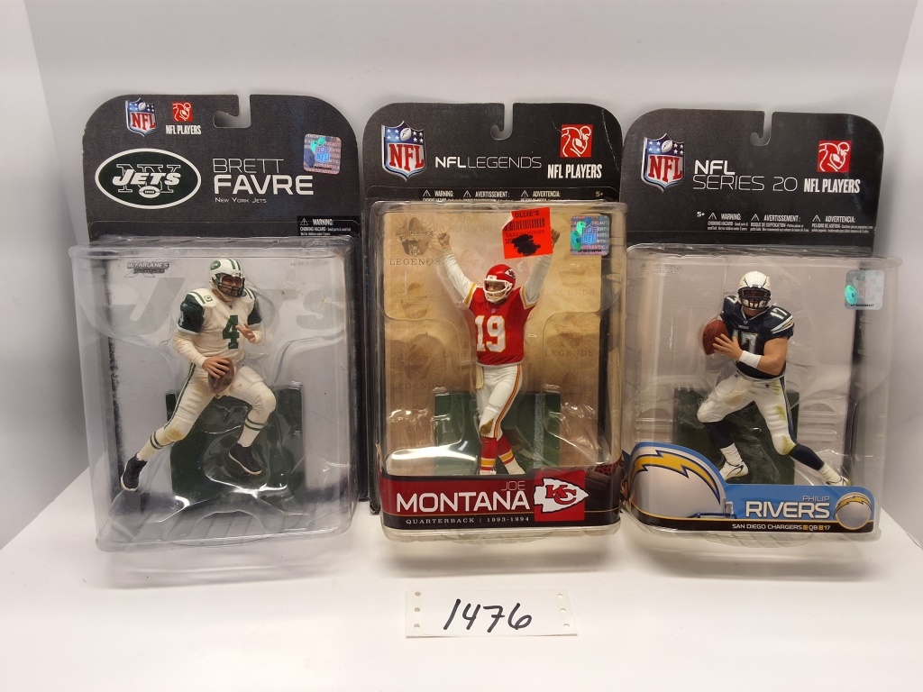 BRETT FAVRE - JOE MONTANA - PHILIP RIVERS - NIB- SHOWS SOME WEAR AND TEAR FROM STORAGE