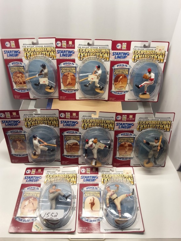 1995 COOPERSTOWN SERIES - WHITEY FORD - BOB GIBSON - HARMON KILLEBREW - DIZZY DEAN - SATCHEL PAIGE - EDDIE MATHEWS - BABE RUTH - ROD CAREW - NIB- SHOWS SOME WEAR AND TEAR FROM STORAGE