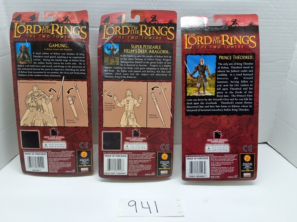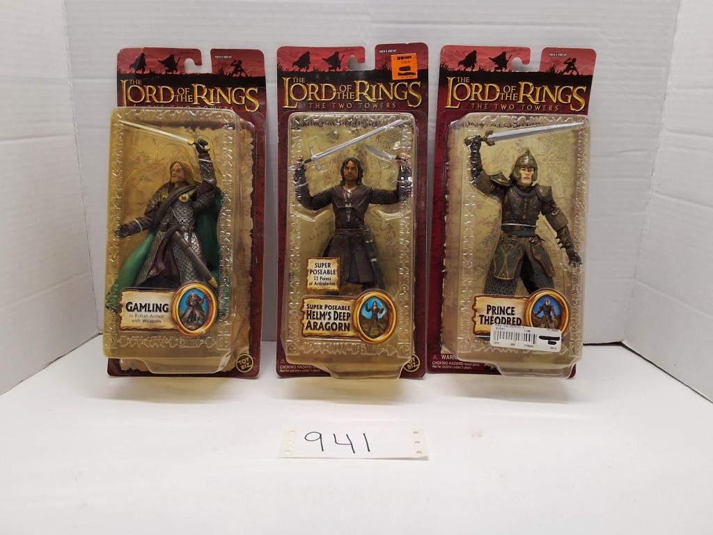 LORD OF THE RINGS - THE TWO TOWERS - ACTION FIGURES GAMLING IN RHAN ARMOR WITH WEAPONS - SUPER POSEABLE HELM'S DEEP ARAGORN - PRINCE THEODRED - NIB - SHOWS SOME WEAR AND TEAR