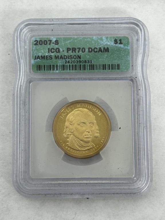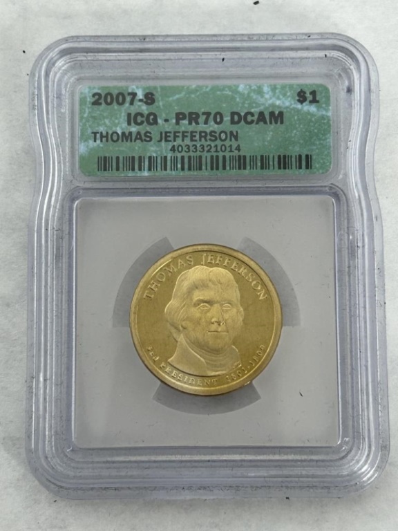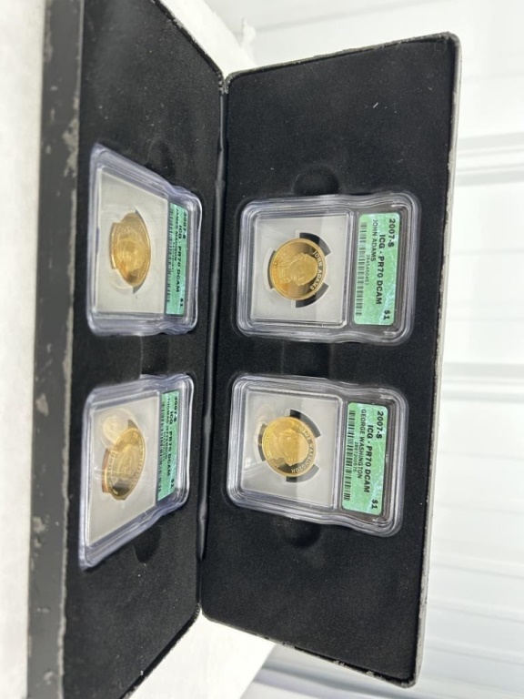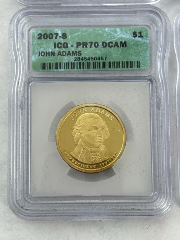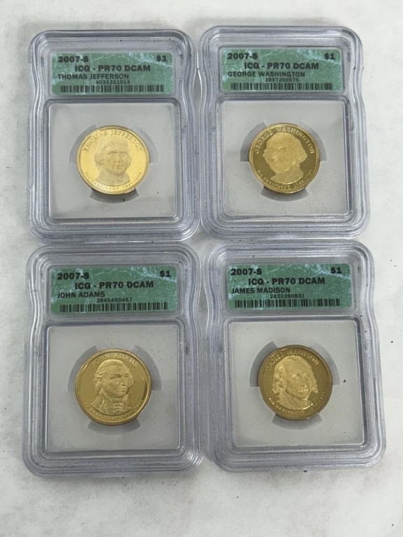 2007-S ICG PR70 DCAM GEORGE WASHINGTON, JOHN ADAMS, JAMES MADISON, AND THOMAS JEFFERSON COINS