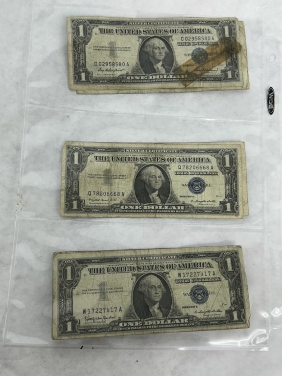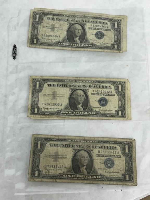 LOT OF SIX SILVER CERTIFICATE ONE DOLLAR NOTES