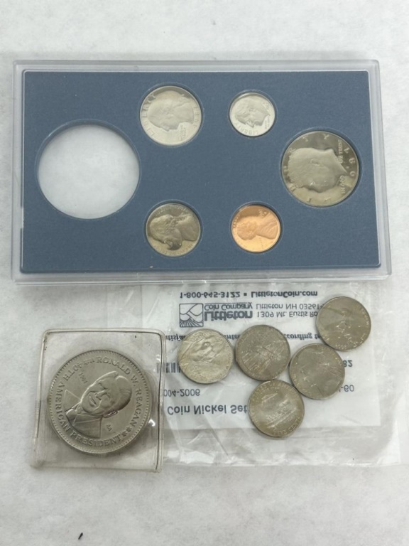 RONALD REAGAN 40TH PRESIDENT COMMERATIVE COIN, LOT ALSO INCLUDES 5 COIN NICKEL SET