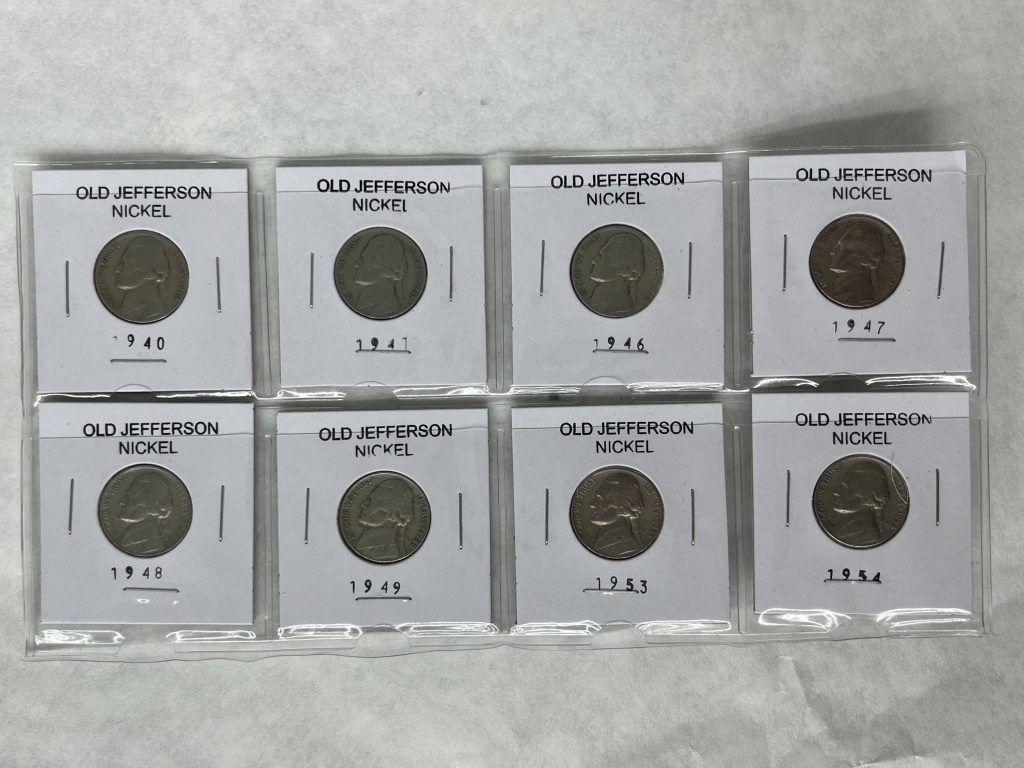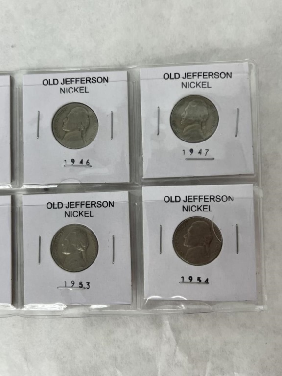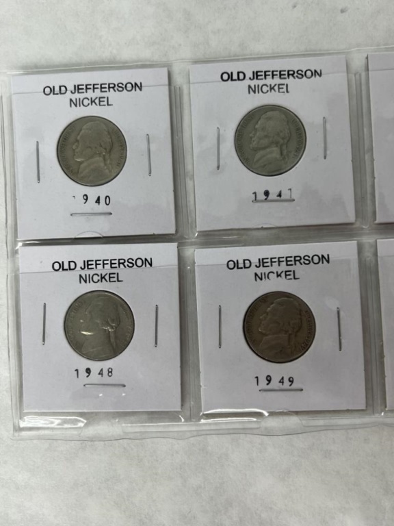 OLD JEFFERSON NICKELS INCLUDING 1940,1941,1946,1947,1948,1949,1953,1954