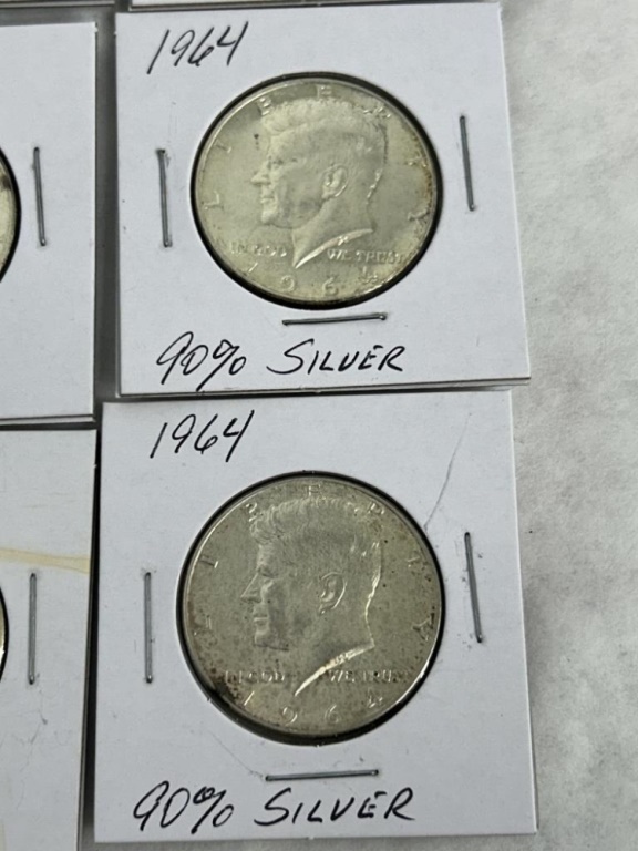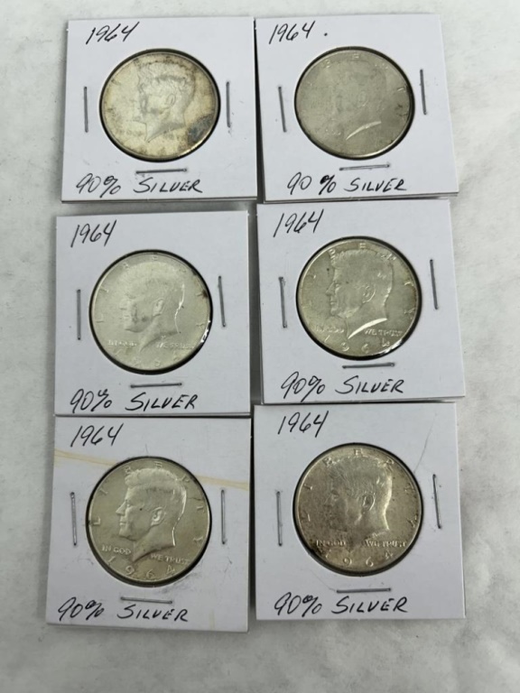 LOT OF 6 1964 SILVER HALF DOLLARS