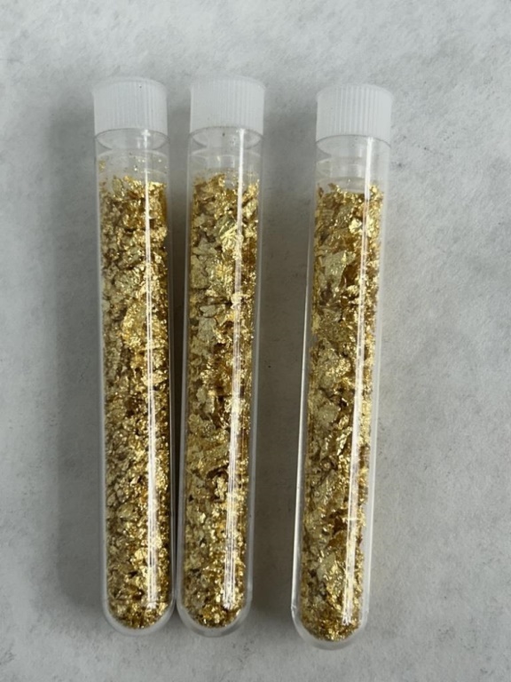 LOT INCLUDES 3 TUBES OF GOLD FLAKE, UNKNOWN WEIGHT NOT AUTHENTICATED