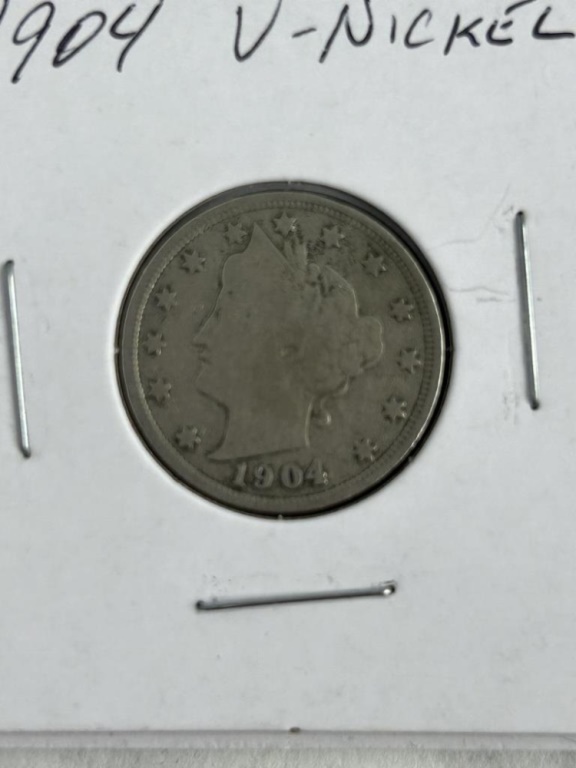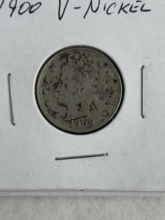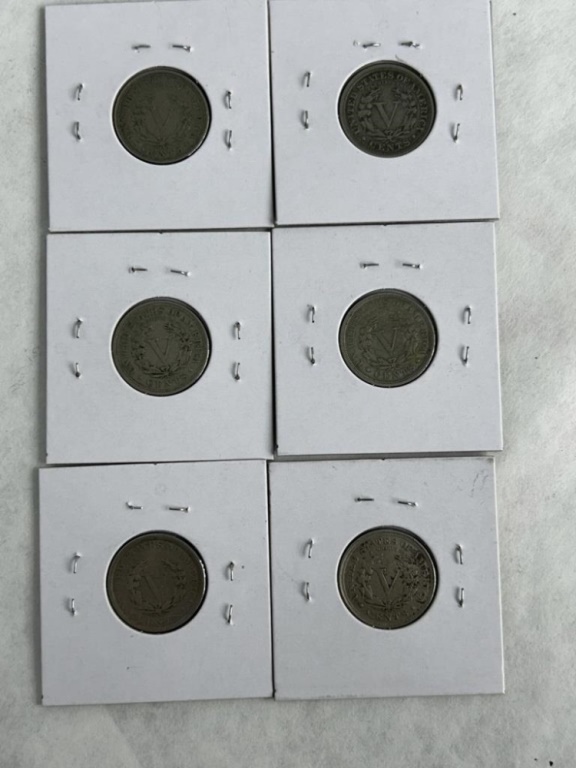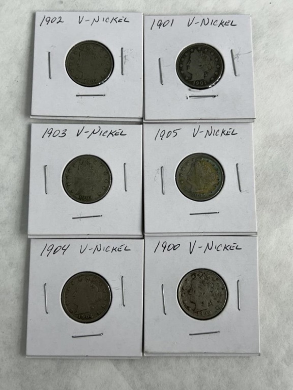 LOT OF V-NICKELS INCLUDING YEARS 1900-1905
