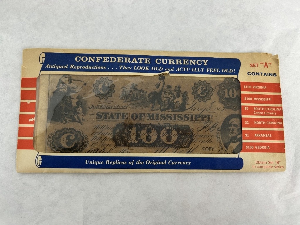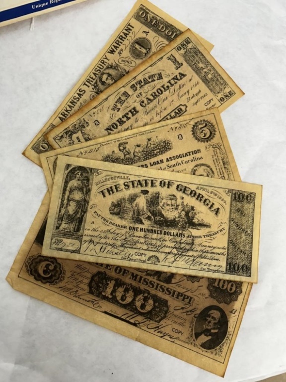 CONFEDERATE CURRENCY COPYS INCULING SOUTH CAROLINA, NORTH CAROLINA, ARKANSAS, MISSISSIPPI, AND GEORGIA