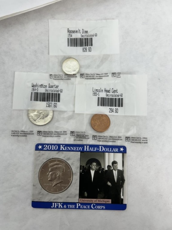 2010 KENNEDY HALF DOLLAR, UNCIRCULATED WAHSINGTON QUARTER, UNCIRCULATED LINCOLN HEAD CENT, UNCIRCULATED ROSSEVELT DIME