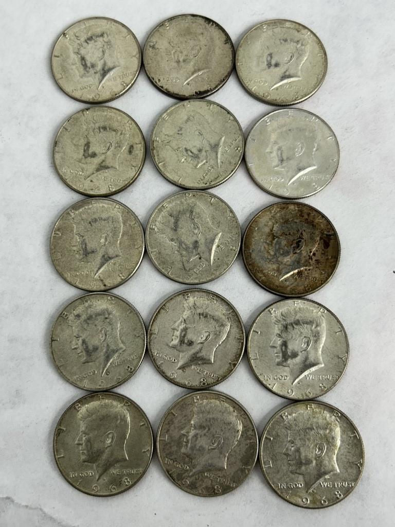 1968 KENNEDY HALF DOLLARS FIFTEEN TOTAL